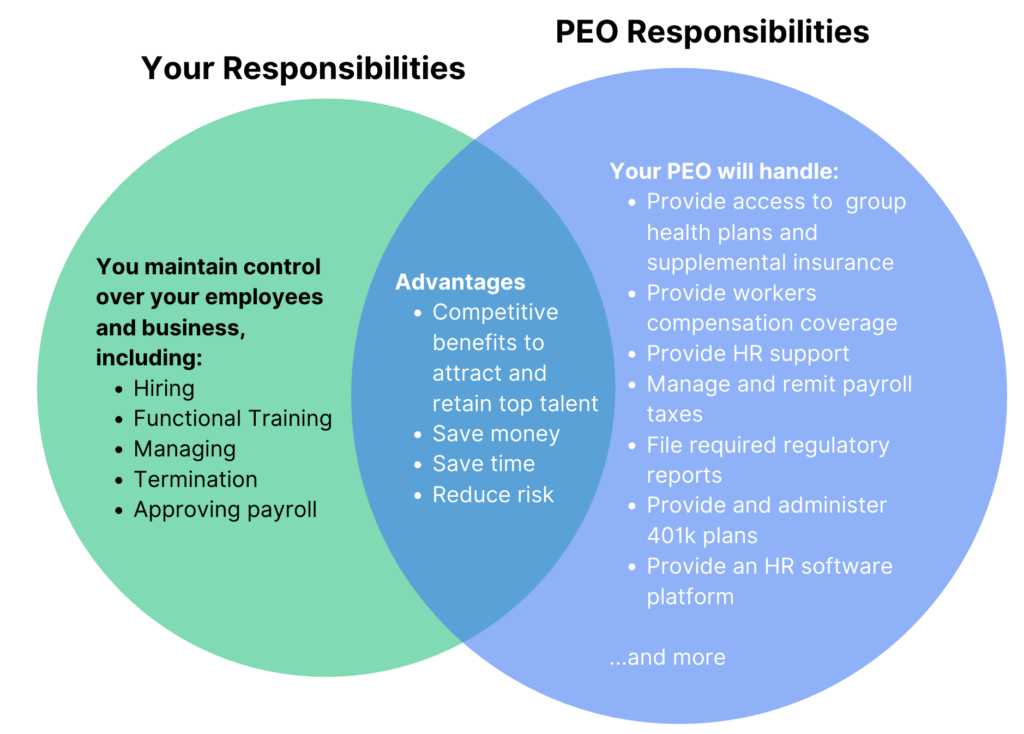 The PEO provides guidance and guardrails, but the business retains authority over how work gets done and how people are managed.